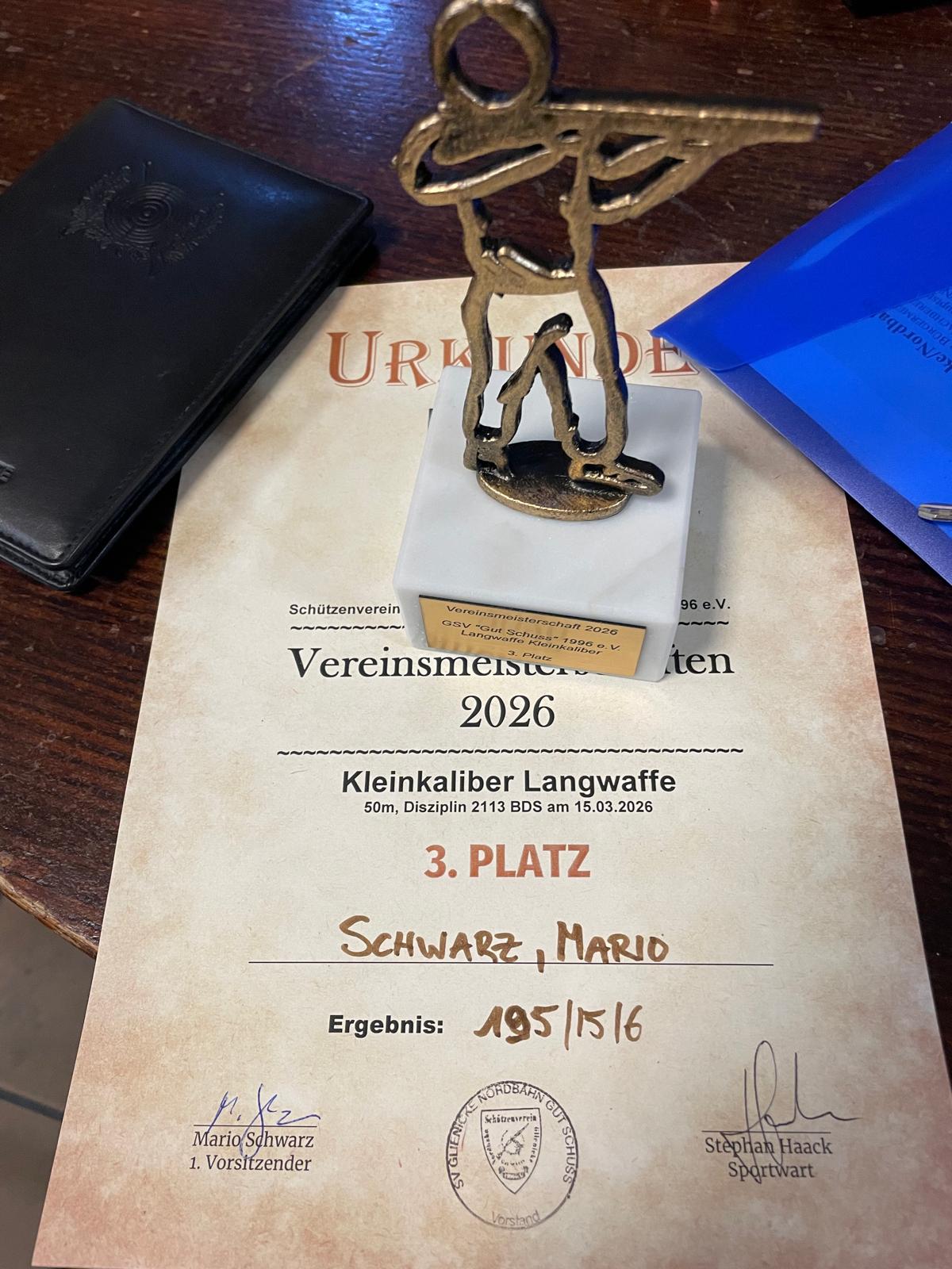 Unsere Glienicker Sportschützen konnten wieder die Langwaffendiziplin für sich